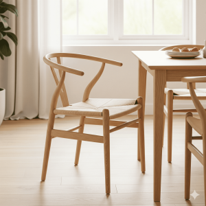 ウェグナーの代表作であり、同社のアイコンでもあるのが「CH24」、通称「Yチェア」です。Y字型の背もたれが特徴的なこの椅子は、50年以上もの間、世界中で愛され続けているロングセラー。熟練の職人が100以上の工程を経て作り上げるYチェアは、まさに木工芸術の傑作です。
