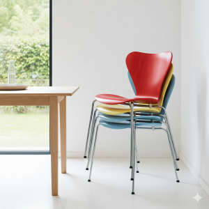 アルネ・ヤコブセンがデザインした「セブンチェア」は、世界で最も売れた椅子の一つとして知られています。三次元成形された背もたれと座面の一体型フォルムは、美しさだけでなく、身体にフィットする快適な座り心地を実現しています。豊富なカラーバリエーションも魅力で、どんな空間にも合わせやすいのが特徴です。