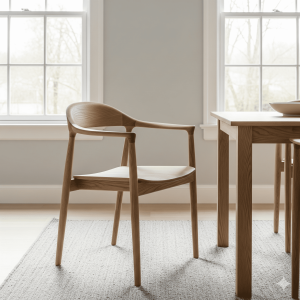 世界的なプロダクトデザイナーである深澤直人氏が手がけた「HIROSHIMA」シリーズは、マルニ木工の名を世界に轟かせた名作です。特に「HIROSHIMAアームチェア」は、継ぎ目がほとんど感じられないほど滑らかに削り出された背もたれからアームにかけての曲線美が特徴。その美しさと座り心地から、Apple社の新社屋にも採用されたことで大きな話題となりました。