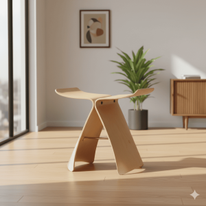 成形合板とは、薄い木の板を何枚も重ねて型に入れ、圧力と熱を加えて自由な曲線を生み出す技術のこと。この技術があったからこそ生まれたのが、柳宗理デザインの「バタフライスツール」です。